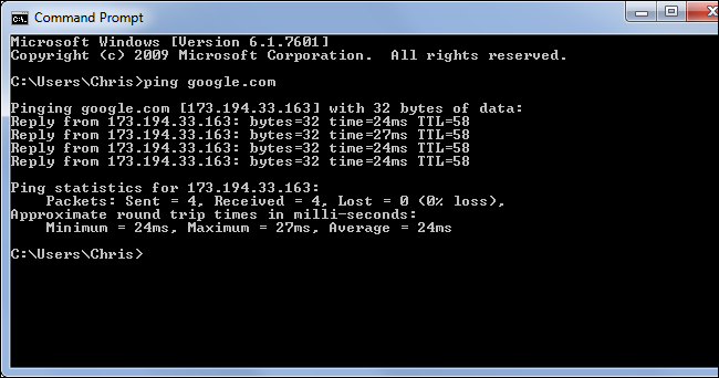 El comando ping envía paquetes de solicitud de eco ICMP a un destino. Por ejemplo, podría ejecutar google.com de ping o ping 173.194.33.174 para hacer ping a un nombre de dominio o dirección IP.