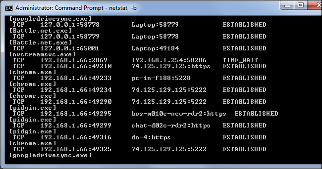 La utilidad netstat puede mostrarle las conexiones abiertas en su computadora, qué programas están haciendo qué conexiones, cuántos datos se transmiten y otra información.