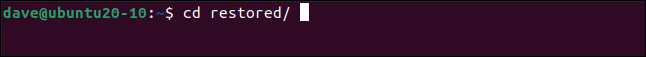 Podemos cambiar al directorio “dave” copiado usando cd. Asegúrese de no incluir una barra diagonal delantera (/) en el camino: desea cambiar al “hogar” local, no al sistema “/hogar”.
