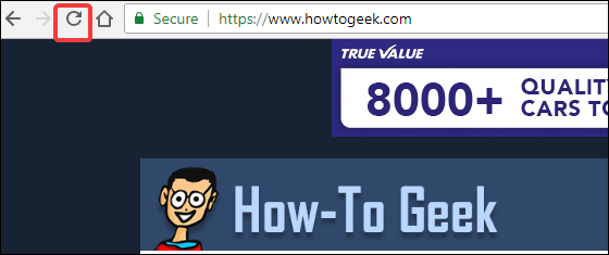 Refrescar la página siempre vale la pena intentarlo. Muchas veces el error 400 es temporal, y una simple actualización podría hacer el truco. La mayoría de los navegadores utilizan la tecla F5 para actualizar y también proporcionan un botón Actualizar en algún lugar de la barra de direcciones. No soluciona el problema muy a menudo, pero solo toma un segundo intentarlo.